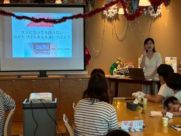 片付け勉強会講師は、整理収納アドバイザー一級チーム『沖縄片付けプロアド』の新垣さやか先生に40分で片付けのコツやポイントを学びました。