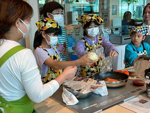 調理体験は各チームに分かれて、カエルぴあスタッフの主導のもと、親子で調理体験をしてもらいました。